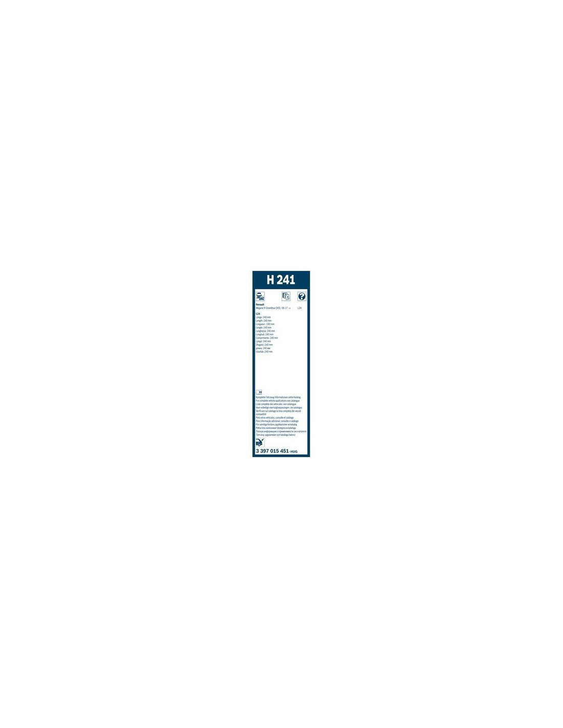 Pyyhkijänsulat Bosch Rear H241. Koodi: H241, Pituus: 240.
