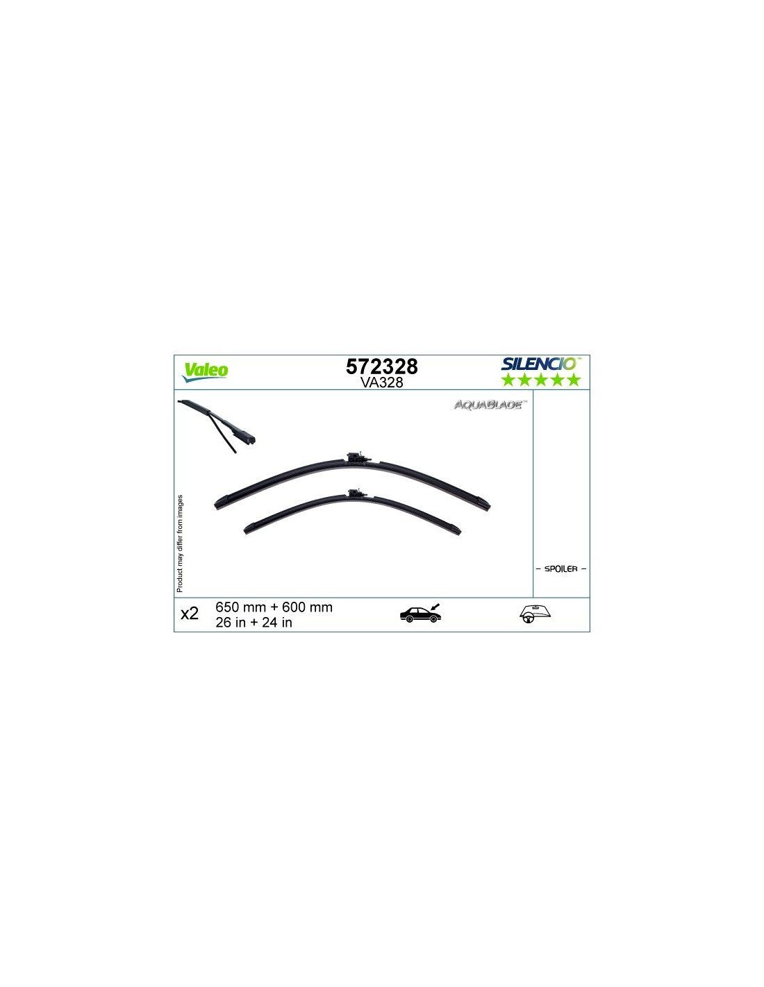 Pyyhkijänsulat Valeo Aquablade VA328. Koodi: VA328, Pituus: 650/600.