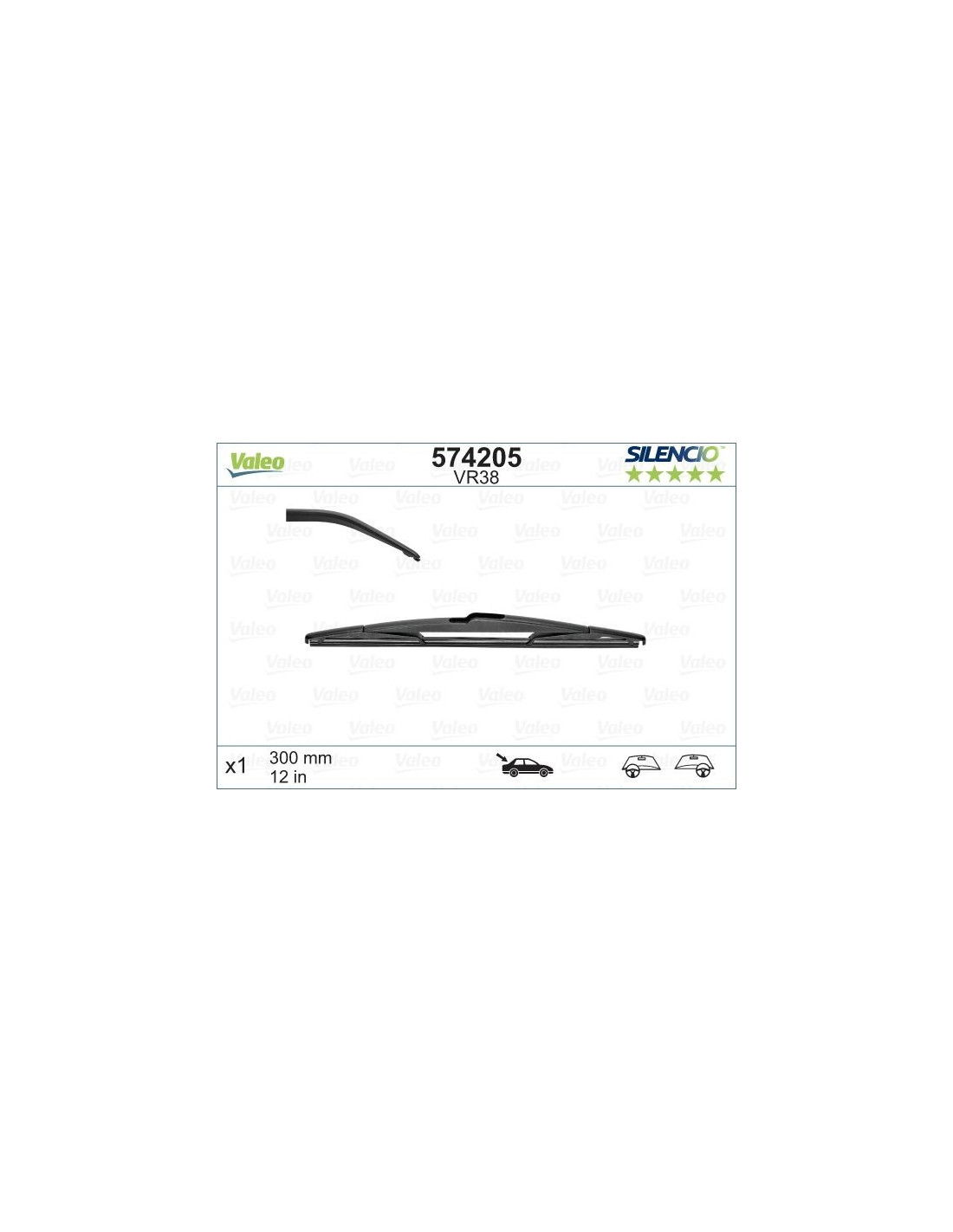 Pyyhkijänsulat Valeo Silencio Rear VR38. Koodi: VR38, Pituus: 300.