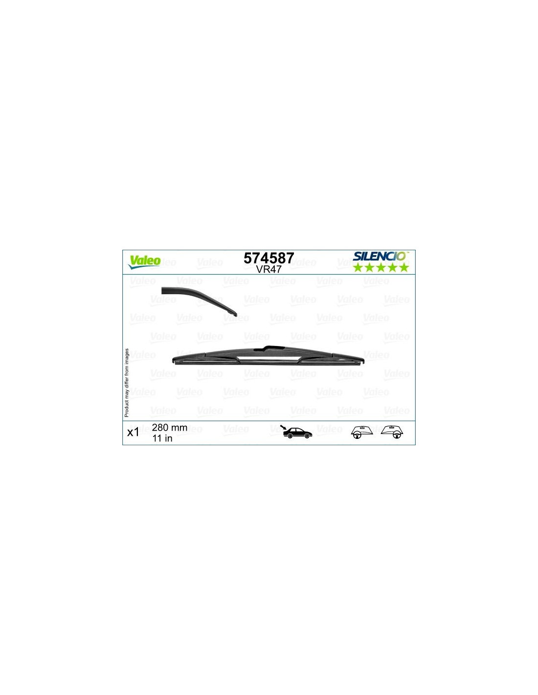 Pyyhkijänsulat Valeo Silencio Rear VR47. Koodi: VR47, Pituus: 280.
