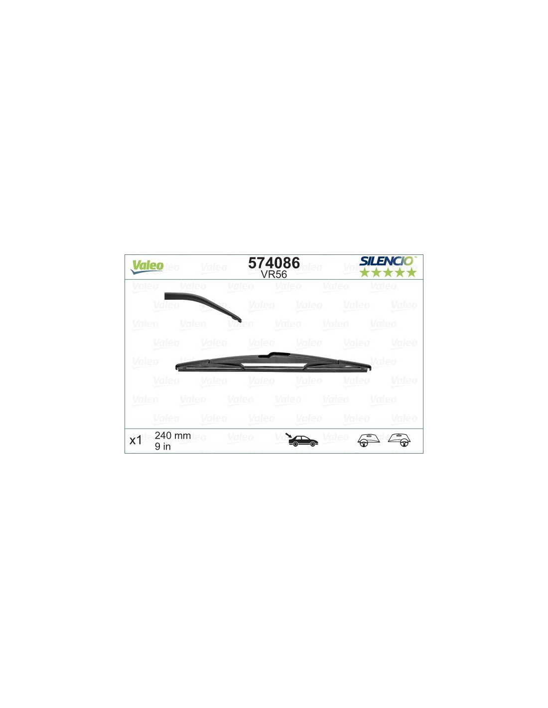 Pyyhkijänsulat Valeo Silencio Rear VR56. Koodi: VR56, Pituus: 240.