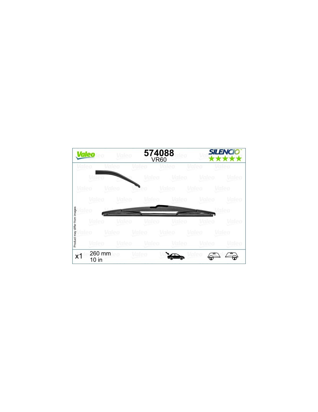 Pyyhkijänsulat Valeo Silencio Rear VR60. Koodi: VR60, Pituus: 260.