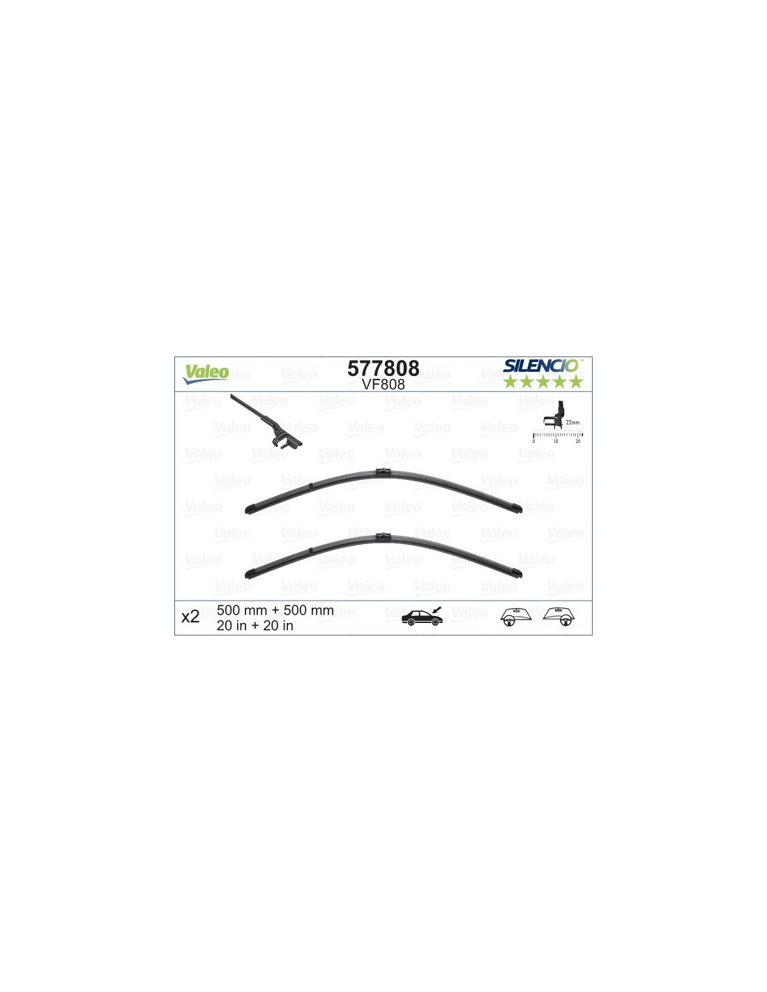 Pyyhkijänsulat Valeo Silencio VF808. Koodi: VF808, Pituus: 500/500.