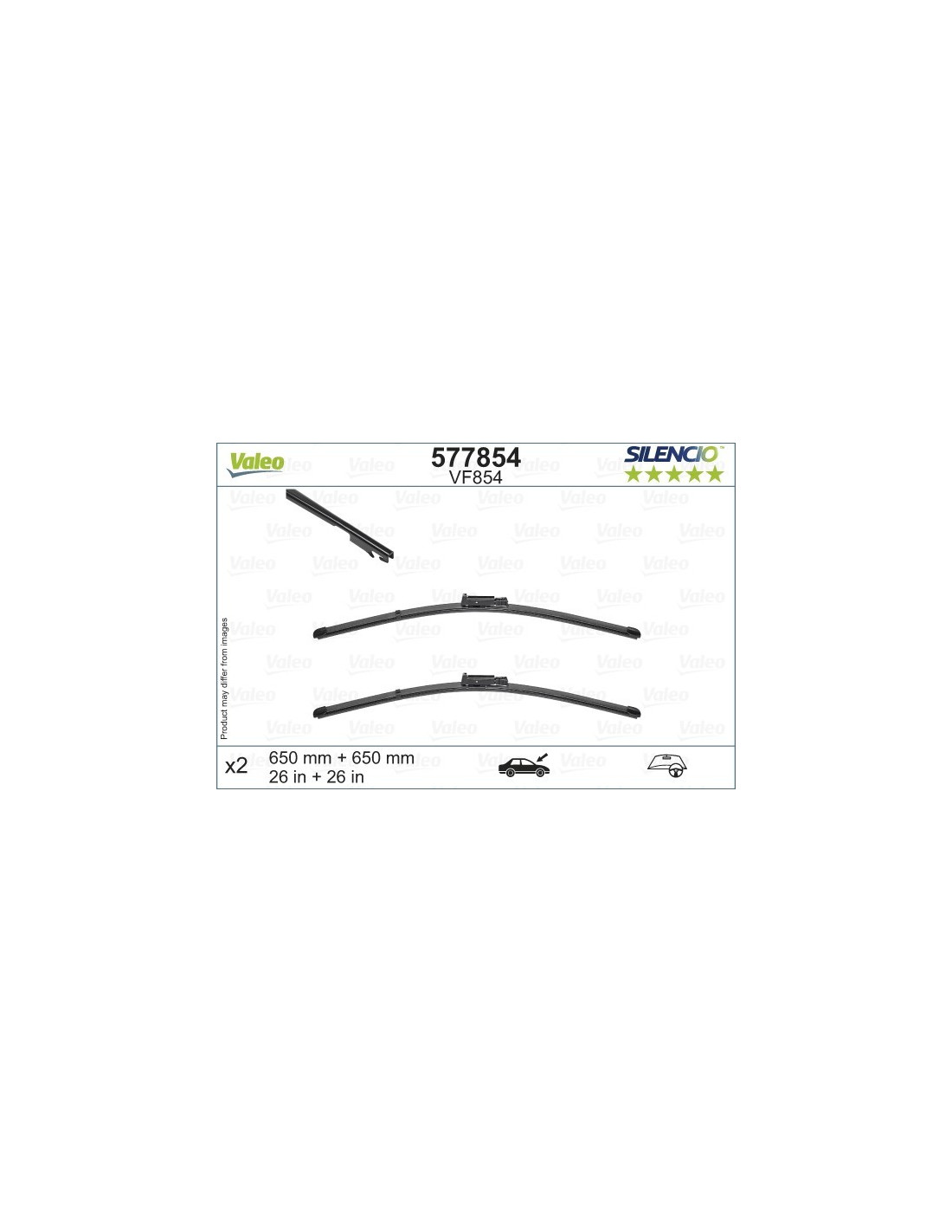 Pyyhkijänsulat Valeo Silencio VF854. Koodi: VF854, Pituus: 650/650.