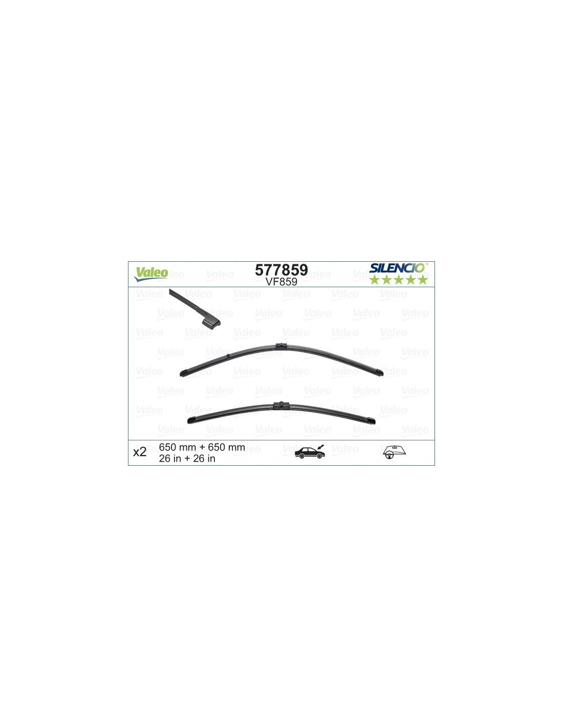 Pyyhkijänsulat Valeo Silencio VF859. Koodi: VF859, Pituus: 650/650.