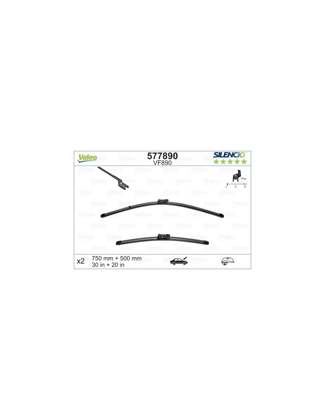 Pyyhkijänsulat Valeo Silencio VF890. Koodi: VF890, Pituus: 750/500.