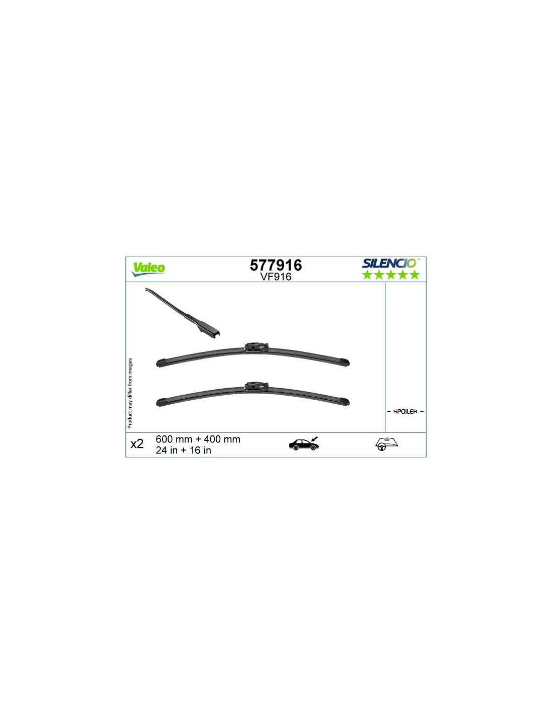 Pyyhkijänsulat Valeo Silencio VF916. Koodi: VF916, Pituus: 600/400.